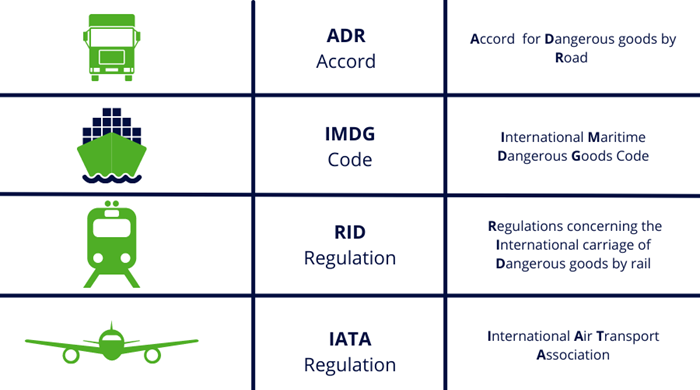 Plusieurs textes de référence existent, selon les modalités de transports utilisées :- ADR